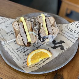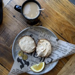 Great spot to pop into for a quick lunch, especially when everything else in the area had like an hour+ long weekend brunch wait. My stomach did not want to wait for nourishment. Lovely bagel selection. I ordered a plain bagel with their rotating spread which was lemon dill feta and it was delicious. Also ordered qishir latte which I believe was rose cardamom? It was also really good. Reasonable prices and pleasant counter service. I wouldn't hesitate to stop by again.